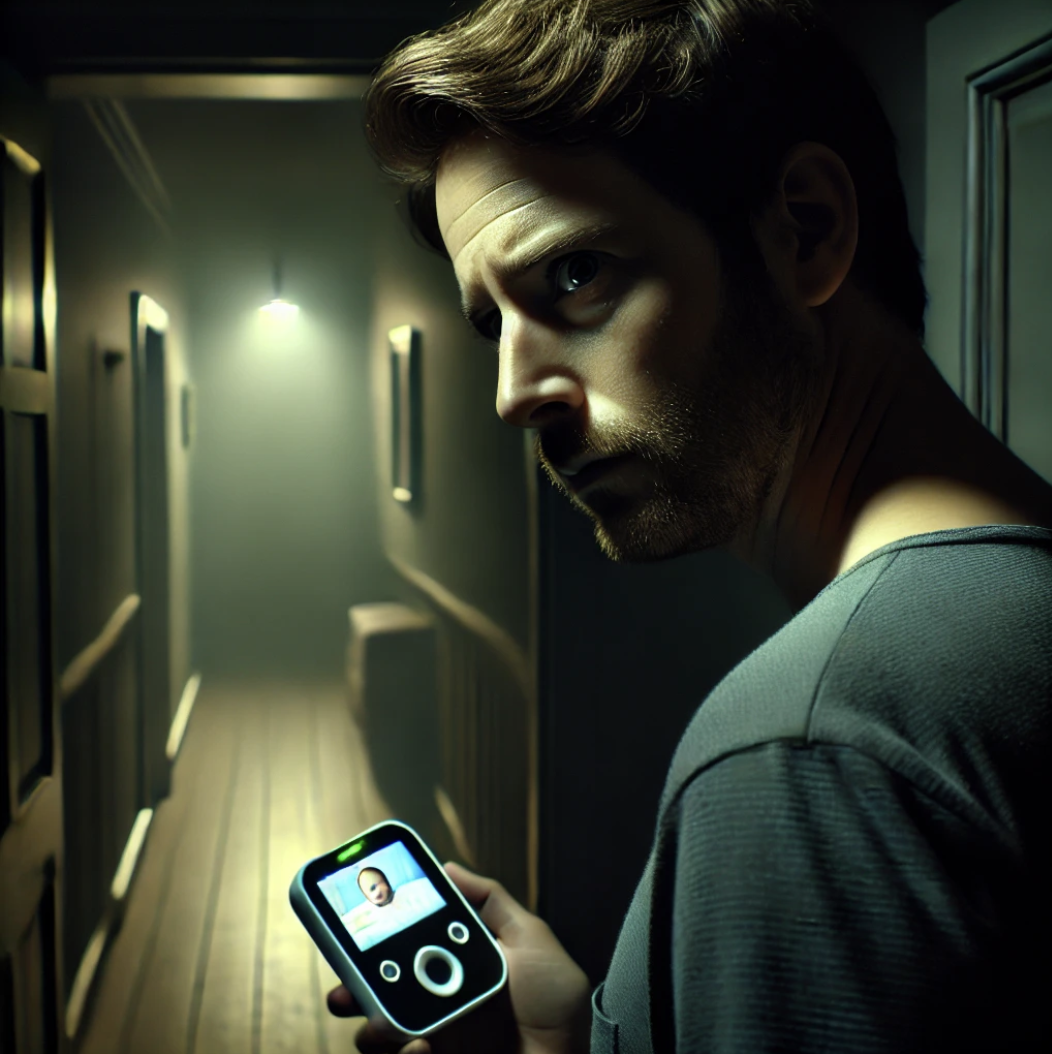 The bedroom door was straight in front of me and I could see all the way down the hall to my husband and son in the Lazyboy chair as this ruckus over the monitor continued.